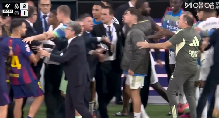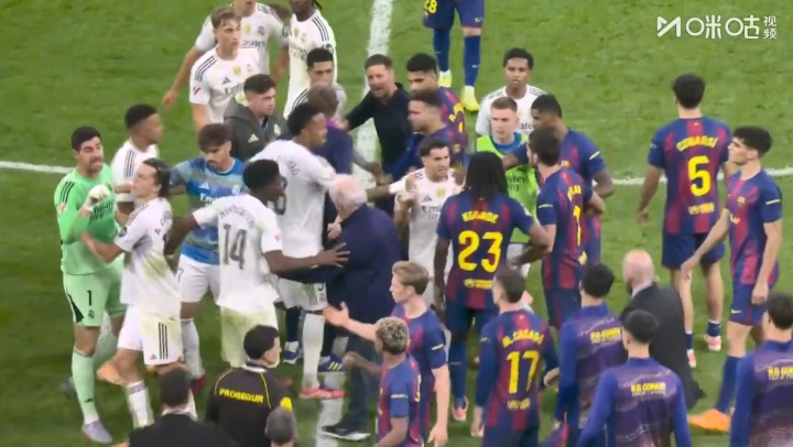 10月27日讯 国度德比终末工夫,佩德里染红,两队在场下爆发横蛮突破!