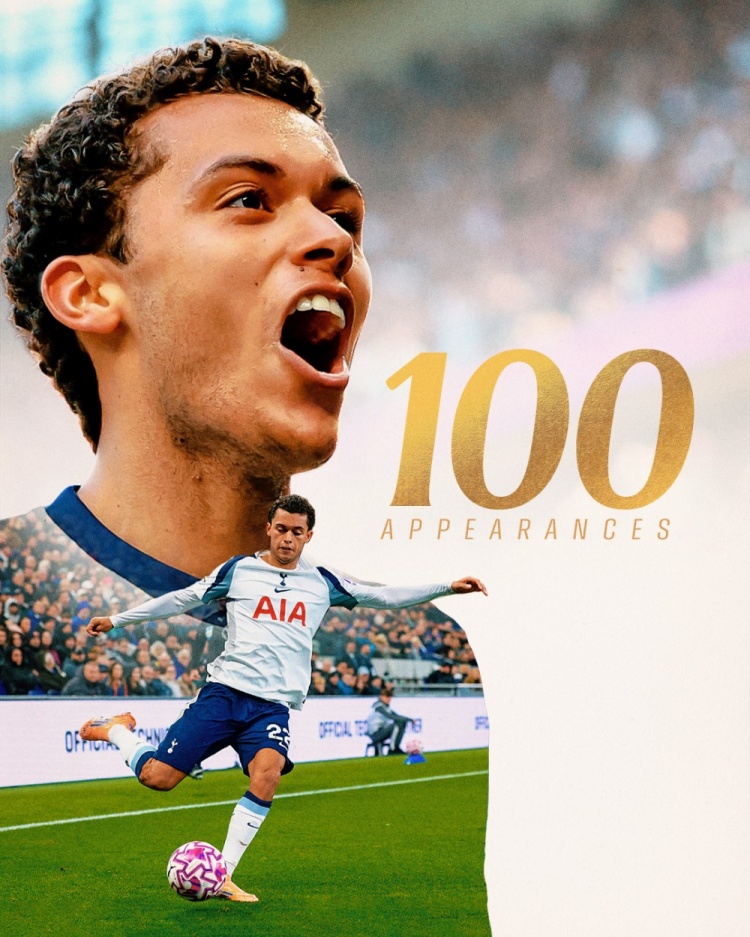 布伦南-约翰逊终了热刺百场里程碑,俱乐部社媒晒海报祝颂