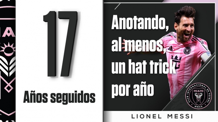 梅西伙同17年戴帽: