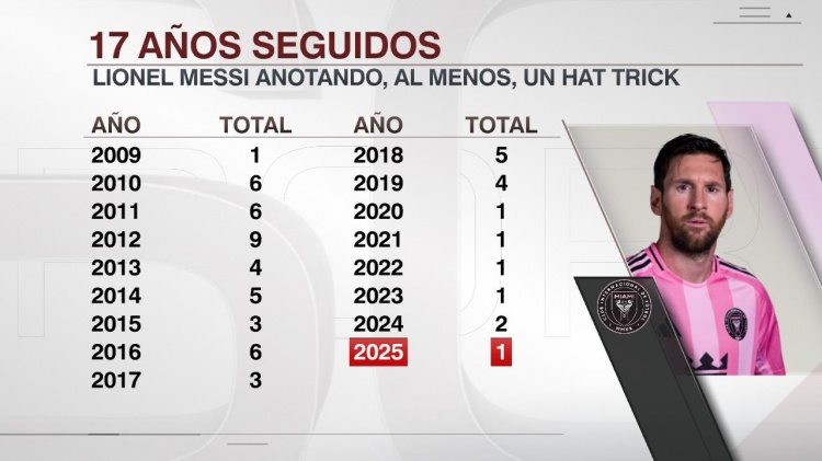据ESPN统计,这是梅西本年的首个帽子戏法,他伙同17年在比赛中戴帽。