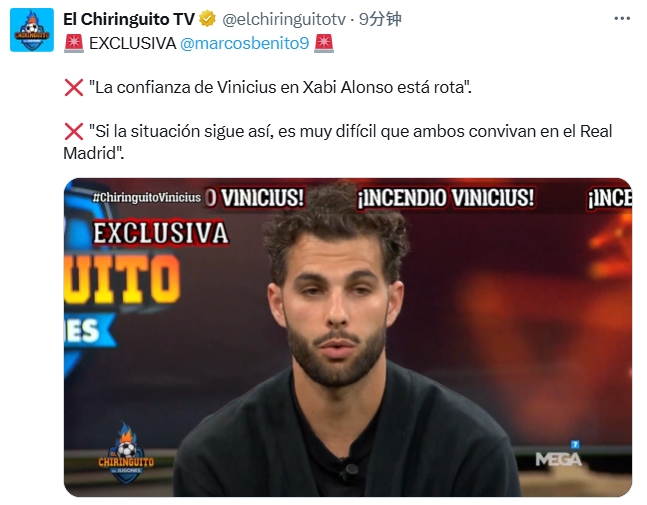 六台记者Marcos Benito报说念,维尼修斯对阿隆索的信任离散,要是情况继续如斯,两东说念主在皇马同事将颠倒费事。
