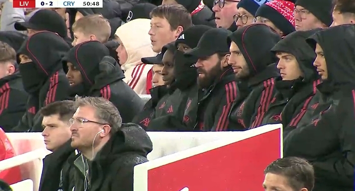 利物浦2球落伍,一众主力雨中看台戴帽不雅战