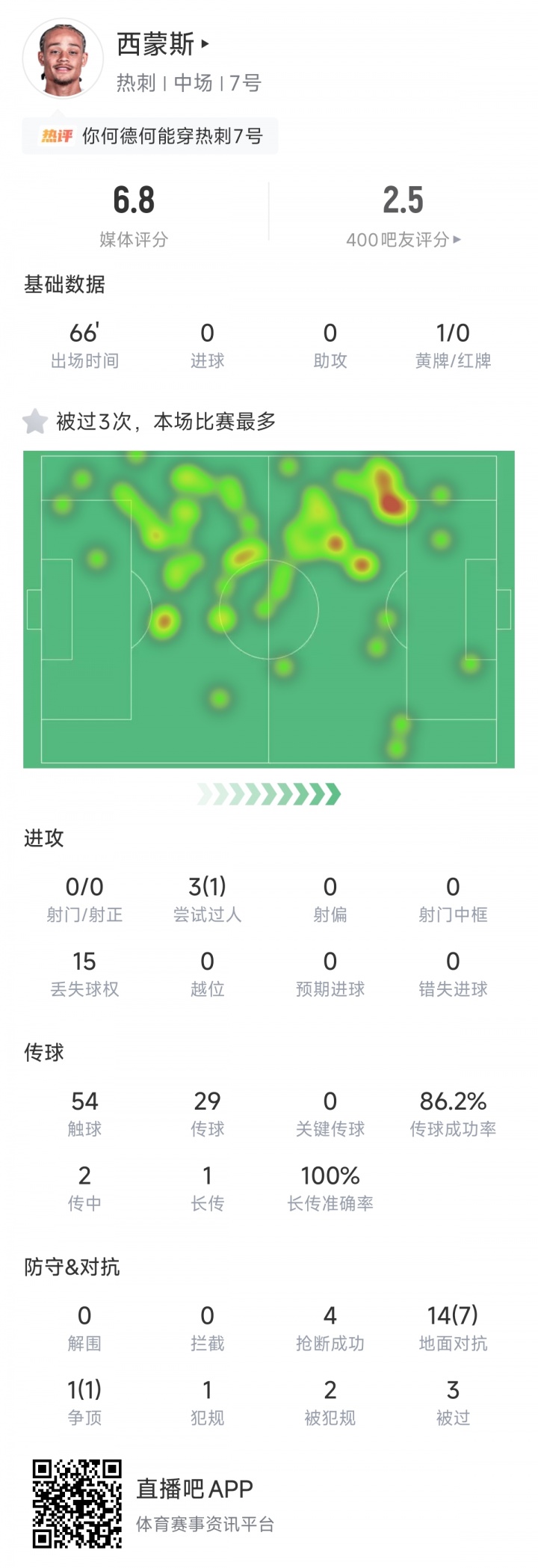 22岁的西蒙斯昨晚第7分钟替补登场,换下脑颠簸的贝里瓦尔。关联词他出战66分钟推崇欠安,被过3次+15次丢球权,传球得手率86.2%。在第73分钟他被换下。