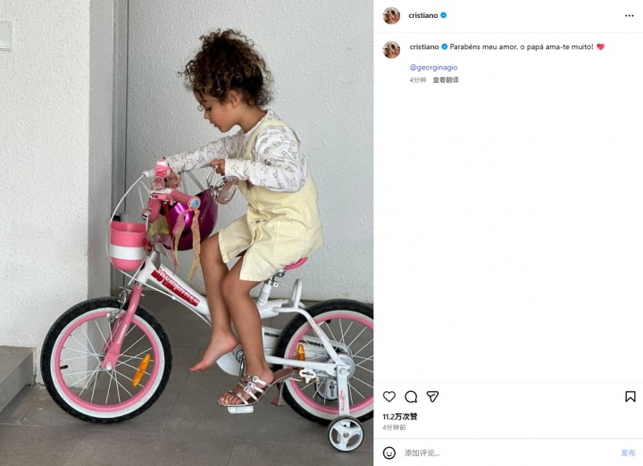 11月12日讯 今天是C罗的二儿子马蒂娜的8岁生辰,C罗在社媒上奉上祝愿:生辰兴隆,亲爱的,爸爸终点爱你!