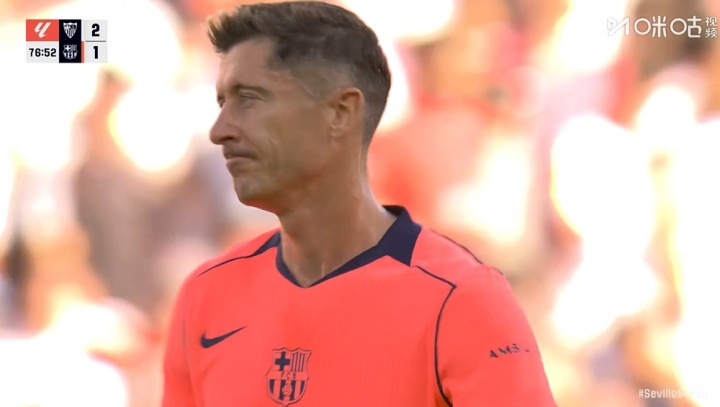 缺憾啊!慢镜头看莱万点球径直踢偏,随后他的神气超越无奈