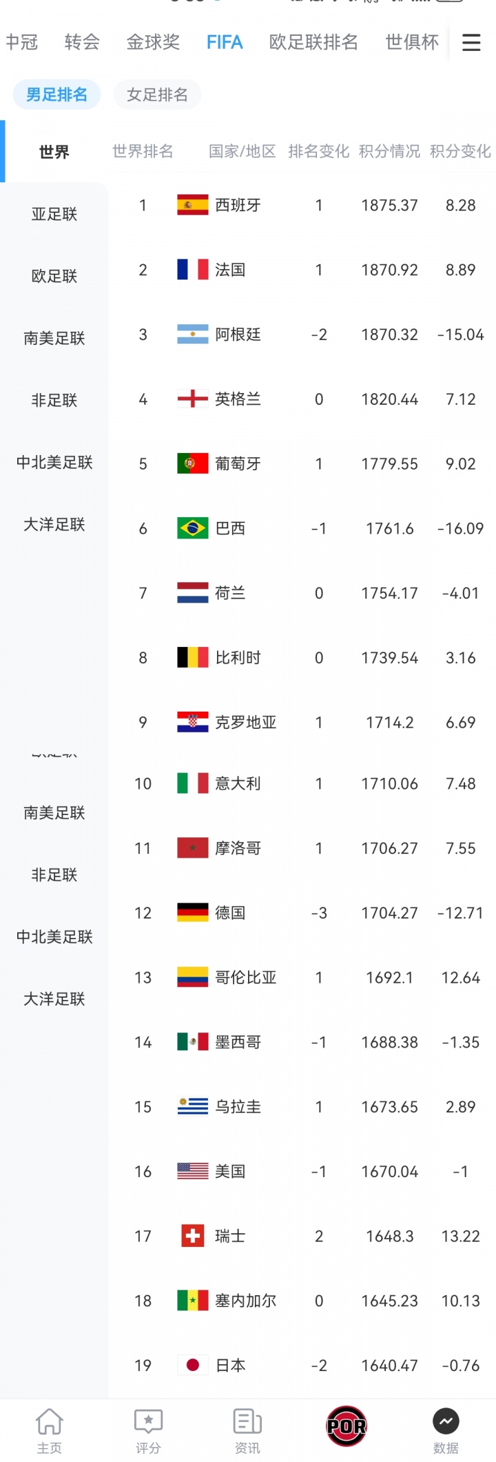 巴西排行第6!日本忖度打算全国杯冠军 前18名谁能稳赢第19的日本队?