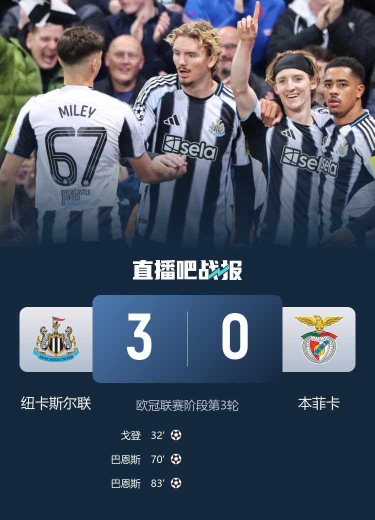 10月22日讯 欧冠联赛阶段第3轮首个比赛日松手,3场英超球队(阿森纳、曼城、纽卡)的欧冠比赛皆奏效拿下奏效且奏效零封敌手。