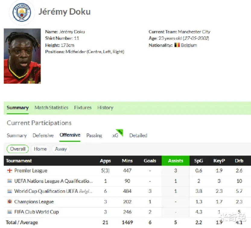 跟哈兰德的数据爆表比较,福登的进球和助攻数齐不显眼,不外他本赛季的作用却是很大。以上一轮与埃弗顿的英超联赛为例,诚然莫得成绩助攻,然则福登送出3次关节传球,创造2次绝佳得分契机,3次过东说念主尝试见效2次。