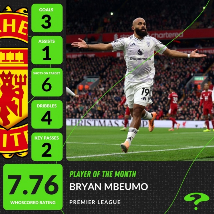曼联新援姆伯莫当选,他在本月英超3场比赛孝顺3球1助攻,匡助红魔得回3连胜。