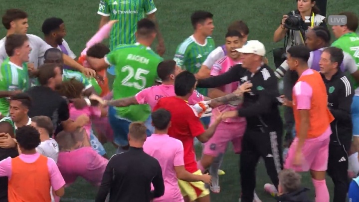 比赛限度后迈阿密球员和对方球员还有责任主谈主员发生封闭,拳脚相向!