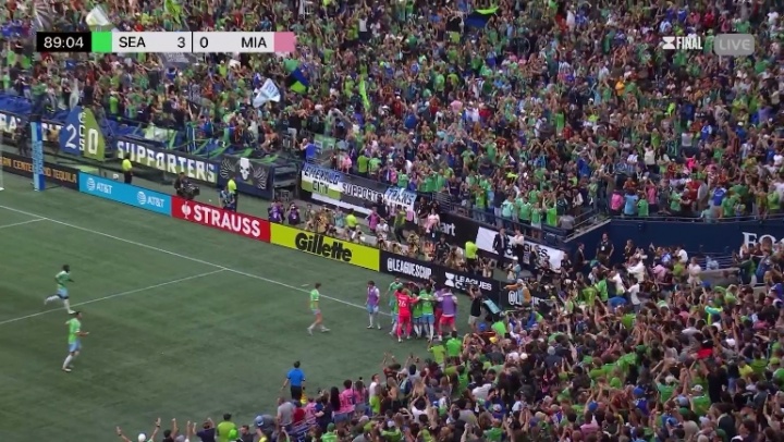第89分钟,西雅图海湾东谈主罗斯洛克破门,3-0迈阿密海外,险些锁定了本场比赛的得胜。