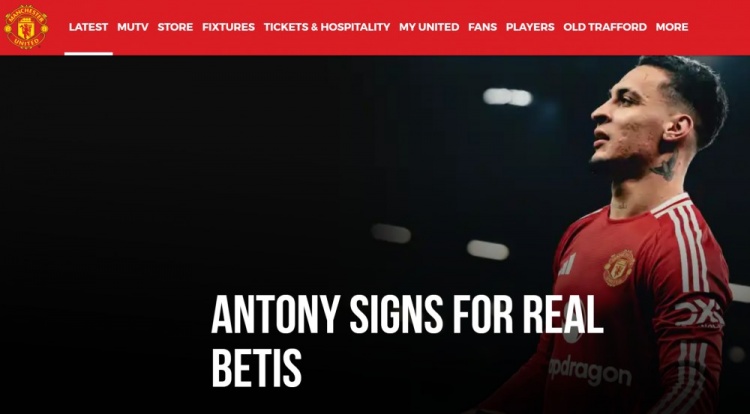 转会贝蒂斯!曼联官方告别安东尼:俱乐部全员祝他将来一切胜利