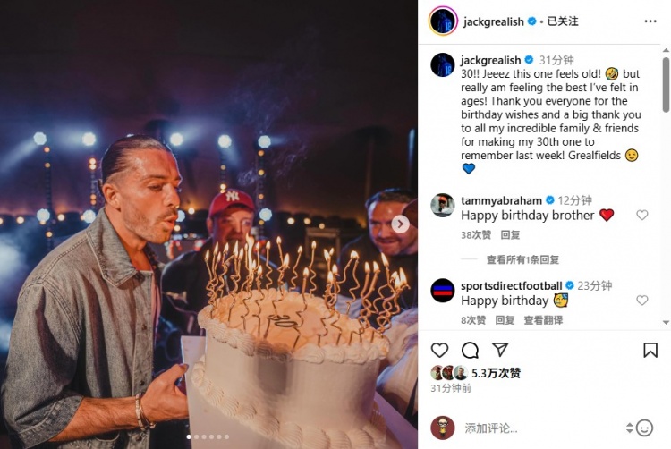 9月10日讯 格拉利什今天在Instagram晒图,庆祝诞辰。