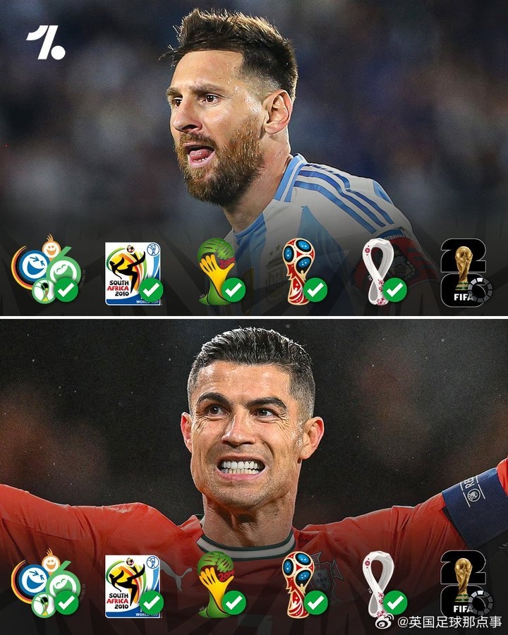 若是梅西和C罗皆能出战2026年寰宇杯,他们将共同创造历史,成为史上首批六次插足寰宇杯的球员🤩🔥