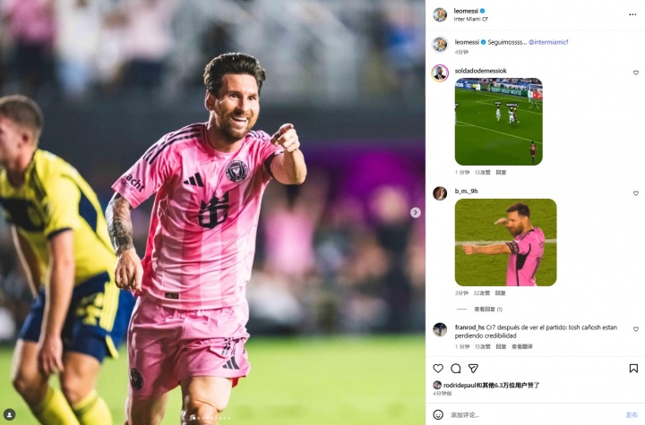 梅西本场2球1助率队晋级,下轮迈阿密海外对阵辛辛那提。赛后梅西更新ins写谈:咱们不绝冲@迈阿密海外