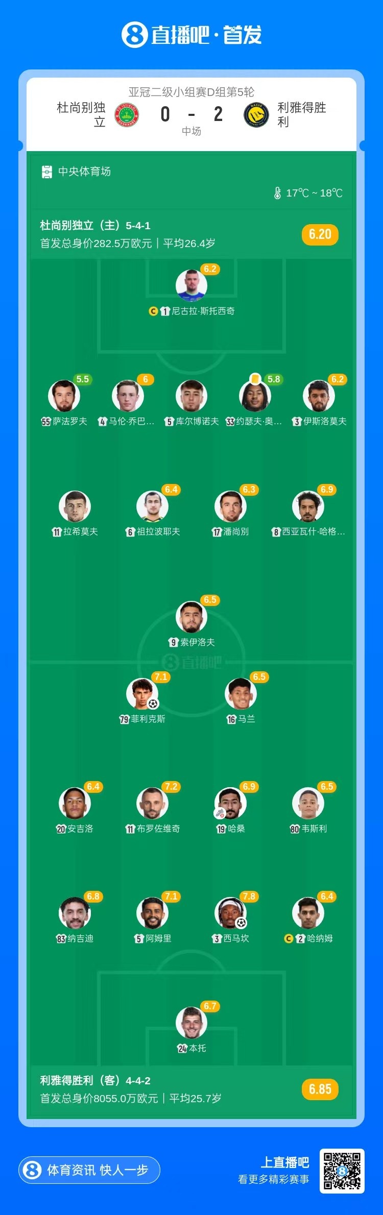 半场-利雅得告捷暂2-0杜尚别孤独 菲利克斯点射破门西马坎立功