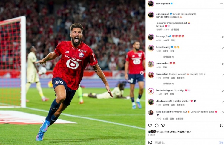 赛后吉鲁在个东说念主社媒晒出庆祝进球的像片,配文写说念:“一场额外迫切的凯旋,为球队的顽强感到夸口!永久确信坚抓到临了,不绝加油!”
