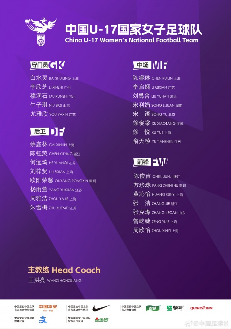 9月3日讯 中国足协官方公布了U17国度女子足球队2025年第五期集训名单,王洪亮出任主拔擢,朱挺、姜宁为历练员,共28名球员入选