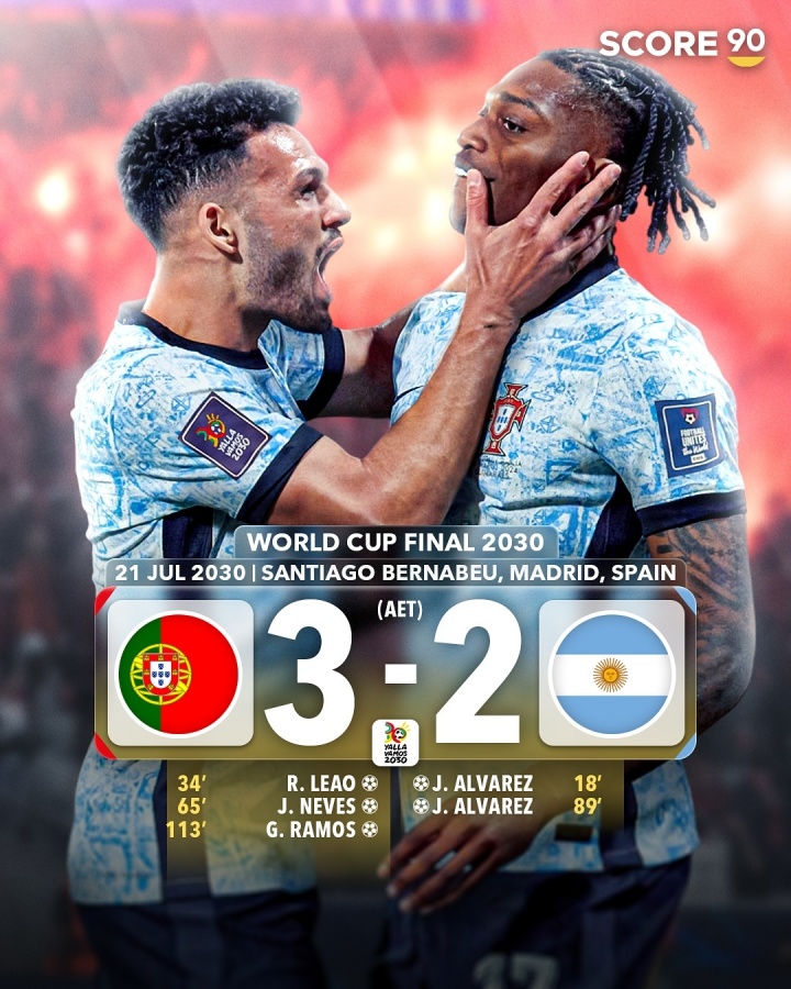 葡萄牙加时3-2逆转绝杀阿根廷,阿尔瓦雷斯首开纪录,莱奥、若奥-内维斯进球反超,小蜘蛛双响扳平拖入加时,贡萨洛-拉莫斯加时绝杀。
